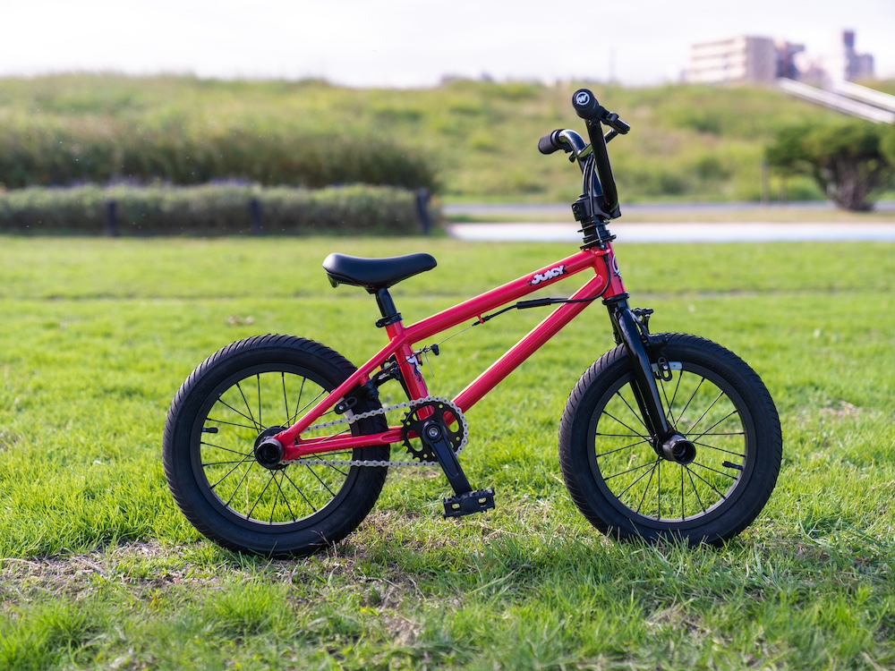 MOTELWORKS JUICY 14″ は、日本人のお子様を意識したサイズ設計、ジャイロブレーキ / アルミペグ / Uブレーキ を標準装備!