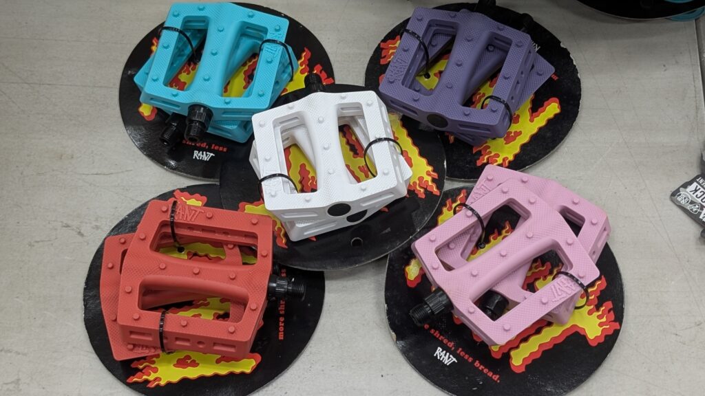 - なぜ、おすすめか? 多くの完成車に付属するペダルは、コストを抑えるために、正直「普通」のものが付いていることが多いです。それを、食いつきの良い(ピンがしっかりしている)ペダルに変えるだけで、バニーホップ練習時の「足が滑るかも」という不安が、驚くほど解消されます。グリップと同じく、カラーバリエーションが豊富なのも魅力ですね。